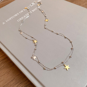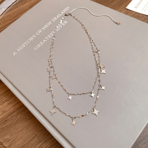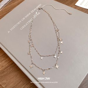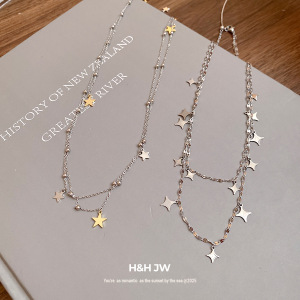 韩系钛钢星星流苏吊坠叠带项链时尚简约气质锁骨链轻奢高级感项饰