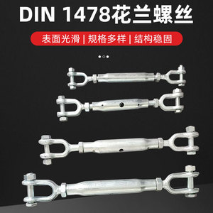 钢绳链条索具拉紧器DIN1478管体花兰收紧器电镀叉叉型花篮螺丝