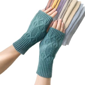 新款毛线手套针织半截手套女冬露指半指手套学生男女情侣毛线手套