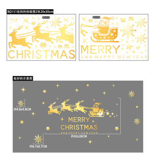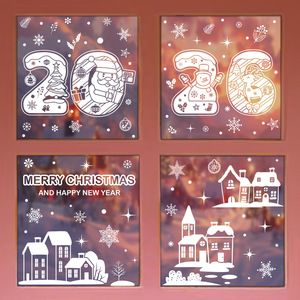 圣诞节雪屋雪镇贴纸白色雪花窗贴金色麋鹿雪橇静电贴纸2026窗花贴