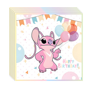 新款粉色史迪奇安琪生日派对餐具套装纸巾纸杯纸盘刀叉勺装饰用品