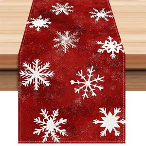 新款圣诞节红底雪花亚马逊雪人桌旗创意餐桌隔热节日装饰长桌布