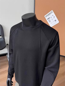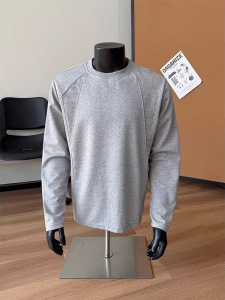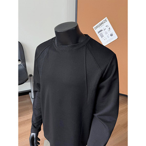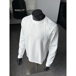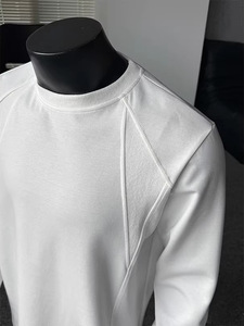重磅螺纹拼接卫衣男款秋季潮牌美式boxy版型t恤长袖无帽外套上衣