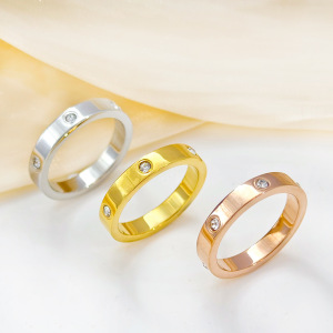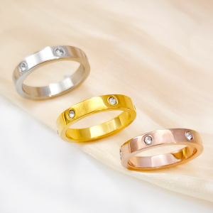 不锈钢经典基础款圆钻素戒男女对戒简约光面轻奢小众设计钛钢戒指