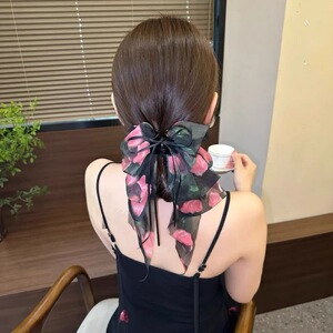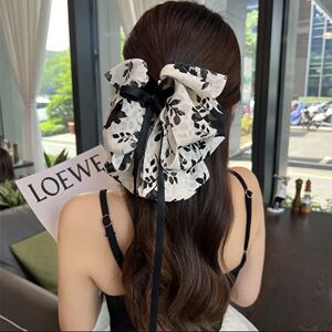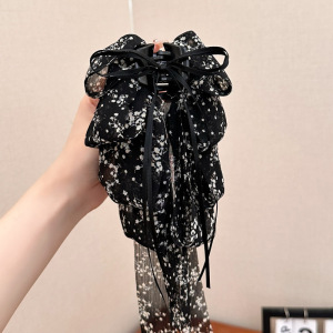 网红碎花大蝴蝶结飘带抓夹森系高级感后脑勺鲨鱼夹雪纺布艺马尾夹