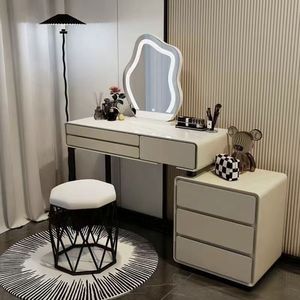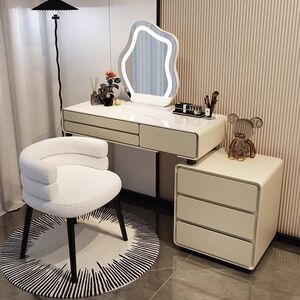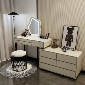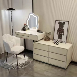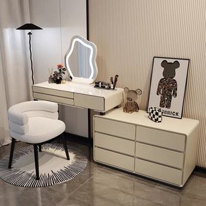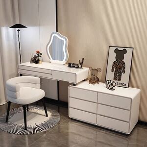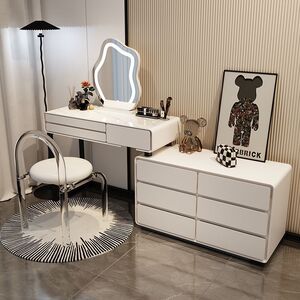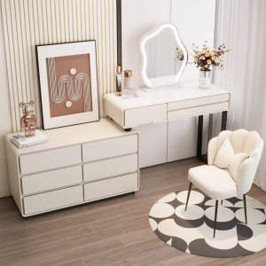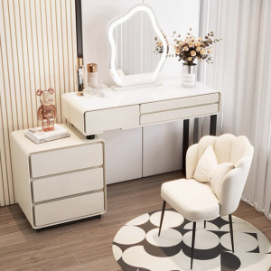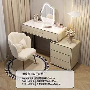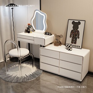 实木岩板奶油风梳妆台全实木现代简约化妆台收纳柜桌卧室梳妆台