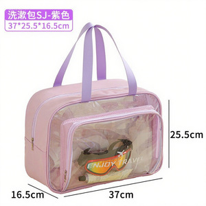 ins风化妆包洗漱包便携防水手提透明PU磨砂洗浴游泳收纳袋大容量