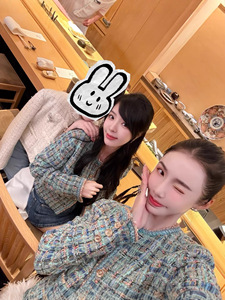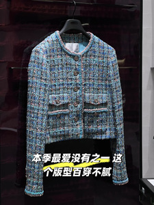 2025A秋冬新款 绿松石彩色编织手工圆领真丝里衬毛呢外套 90089#