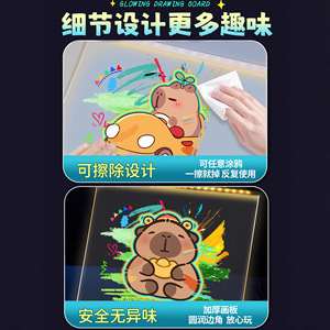 聪慧脑瓜卡皮巴啦会发光的画板儿童玩具电子手写字板可擦荧光宝宝