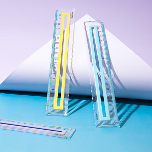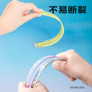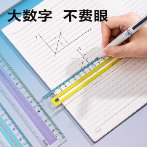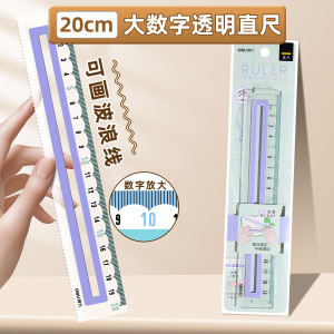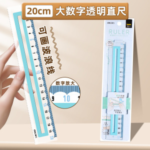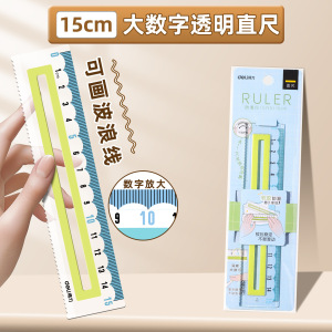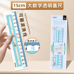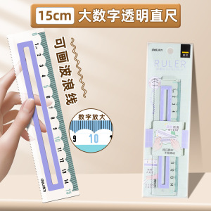 得力包胶防滑尺子小学生用直尺带波浪线易拿取高颜值透明尺子格尺