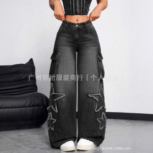 available Cargo jeans设计款女士口袋工装牛仔裤宽松阔腿裤批发