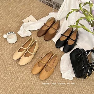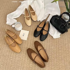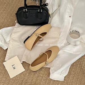 LUDAKE鹿大可 简约通勤百搭一字扣带玛丽珍鞋女春秋平底豆豆单鞋