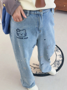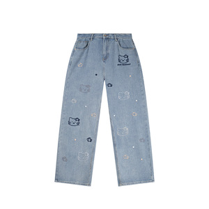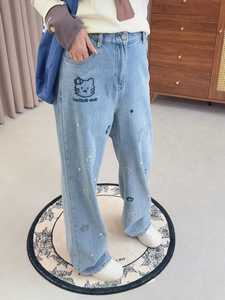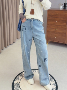 爱元2025新款早秋款大码女装200斤刺绣小猫休闲牛仔裤YC286