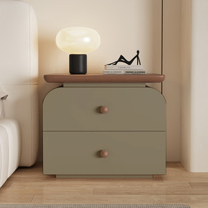 2025新款免安装中古奶油风极简现代高级感收纳储物卧室床头柜