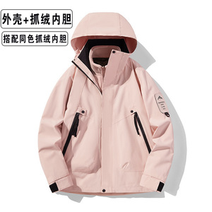 冲锋衣男三合一冲锋衣女两件套防风防水保暖外套宽松版大码登山服