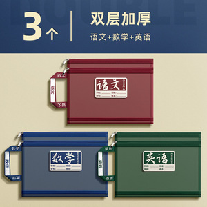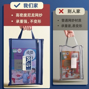 小学生学科科目分类袋透明网纱文件袋拉链式双层大容量收纳袋书袋