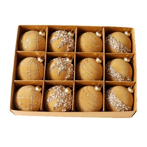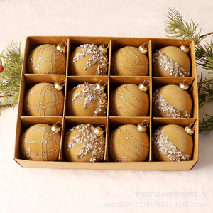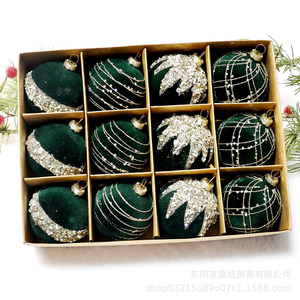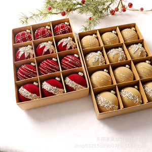 跨境圣诞树装饰球圣诞彩绘球植绒暗红圣诞球DIY挂饰场景布置精致