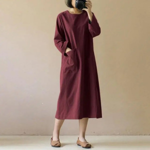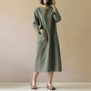 春秋季新款棉麻连衣裙百搭长袖裙子宽松洋气减龄显瘦时尚女装长裙