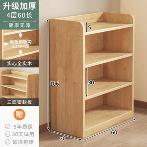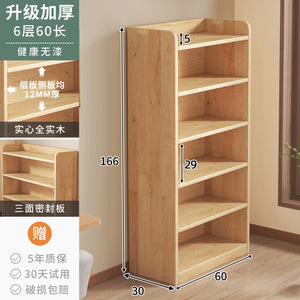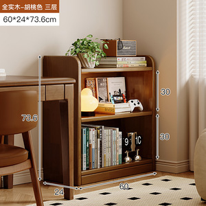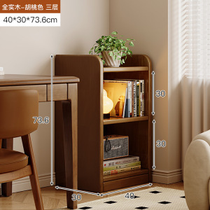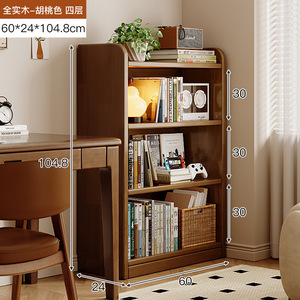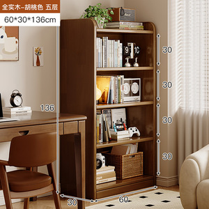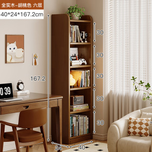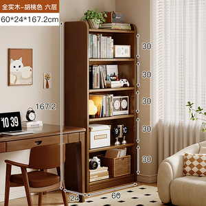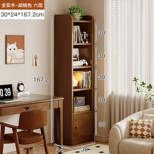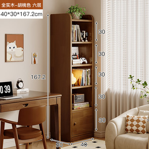 全实木书架落地置物架一体靠墙胡桃木色窄缝收纳储物柜子家用书柜