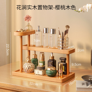 实木化妆品收纳盒桌面轻奢高级感梳妆台香水首饰置物架粉扑收纳架