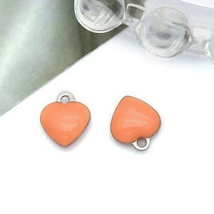1个钢色不锈钢双面珐琅橘色爱心8X9mm-0.34g-T1052