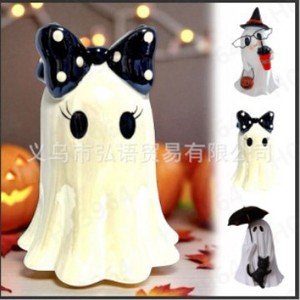 新款跨境可爱幽灵装饰树脂万圣节家居创意工艺品摆件节日氛围