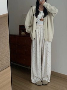 秋冬波点蝴蝶结糯米裤宽松显瘦垂感休闲窄版拖地裤加长遛弯裤子女