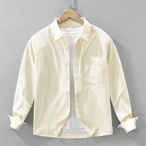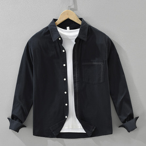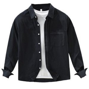 7686日系复古新款长袖衬衫男士时尚百搭文艺休闲宽松上衣一件代发