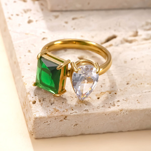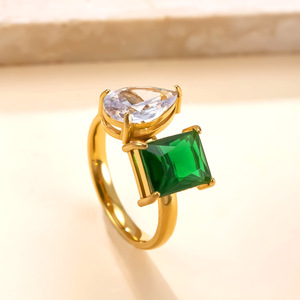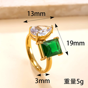 跨境热卖不锈钢戒指 镶钻戒指女小众设计镀18k金锆石指环外贸饰品