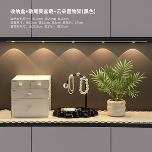 收纳盒+散尾葵盆栽+云朵置物架(黑色)