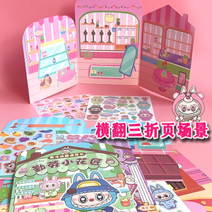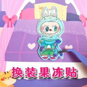 2025新款拉布布ins风果冻贴可反复水洗萌卡通益智贴造景二合一