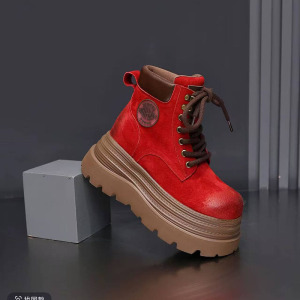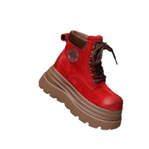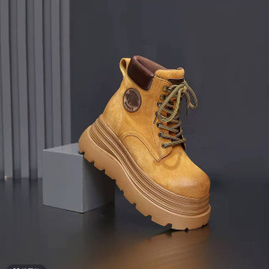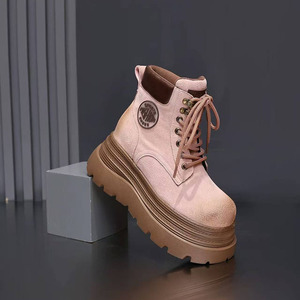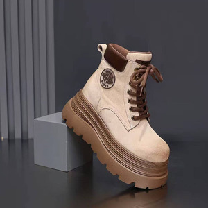 菡履nis真皮厚底马丁靴女新款秋冬复古英伦风大黄靴百搭系带靴子