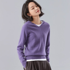 100%羊毛无缝一体连帽针织衫女秋冬纯色休闲时尚打底衫外穿保暖女