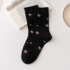 韩系小碎花袜子女 秋冬季新款中筒袜 复古纯棉堆堆袜诸暨袜子批发