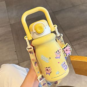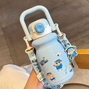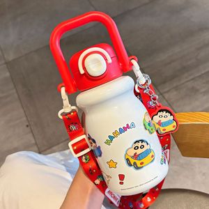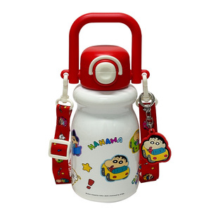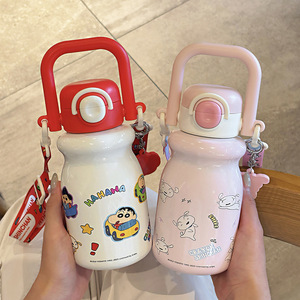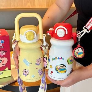 蜡笔小新牛奶双饮保温杯316可调节杯绳方便携带独立公仔硅胶水杯
