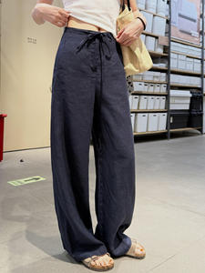 白色亚麻窄版阔腿裤女2025夏季新薄款高腰显瘦宽松透气拖地长裤子