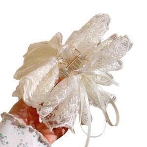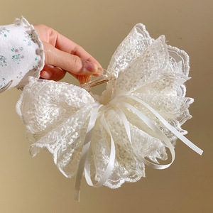 法式温柔米色蕾丝蝴蝶结抓夹女高级感百搭夹子头饰后脑勺鲨鱼夹