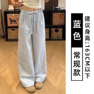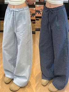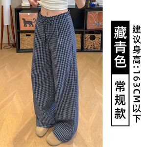慵懒风宽腰格子阔腿裤女夏季薄款设计感垂感高腰休闲直筒拖地长裤
