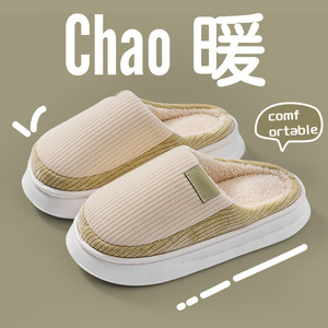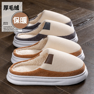 棉拖鞋女秋冬季新款室内家居防滑厚底保暖加绒情侣毛毛拖鞋男冬天