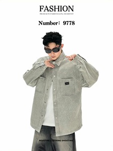 运动风格夹克休闲工装立领宽松休闲外套批发美式扎染印花外套男秋