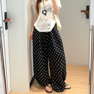 波点阔腿裤女秋季韩系高腰显瘦百搭直筒裤高级垂感遛弯宽松休闲裤