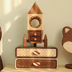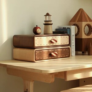 桌面双层实木玄关抽屉收纳盒家用戒指首饰储物盒胡桃色大容量收纳