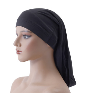 跨境希音热卖新款包头纯色弹力水晶麻打底帽 方便懒人套头帽批发
