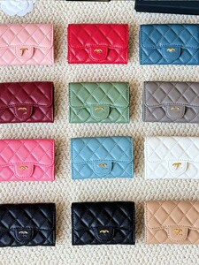 新款鱼子酱真皮百搭通用牛皮按扣卡包轻奢超轻薄短款香风小众钱包