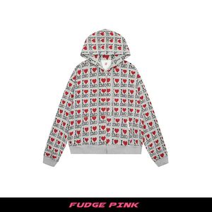 Fudge Pink 25秋季新品美式复古辣妹个性图案连帽卫衣开衫