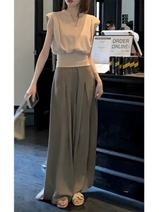 夏装搭配一整套减龄韩系茶系穿搭干练气质上班通勤盐系轻熟两件套