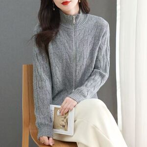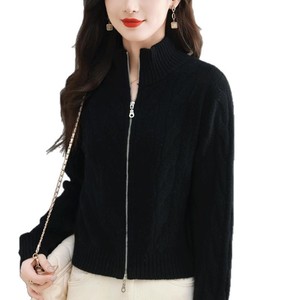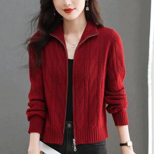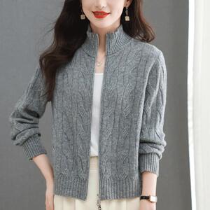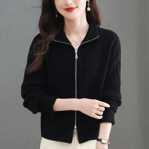 女春秋翻领短款拉链小款毛衣外套新款洋气外搭小个子针织开衫上衣