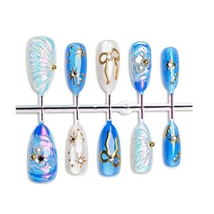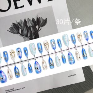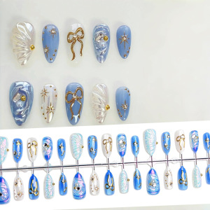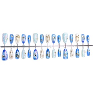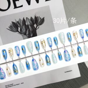 人鱼珠光细闪贝壳湖蓝色清透穿戴甲ins夏日小清新美甲贴片细闪