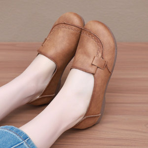 妈妈鞋单鞋女2025春秋季新款软底舒适一脚蹬豆豆鞋老北京布鞋女鞋