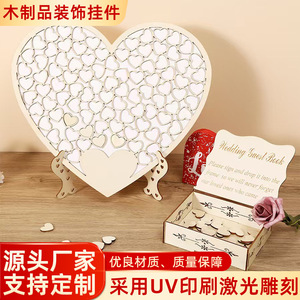 镶嵌款木制工艺品婚礼纪念宾客爱心签到涂鸦摆台节日派对桌面摆件